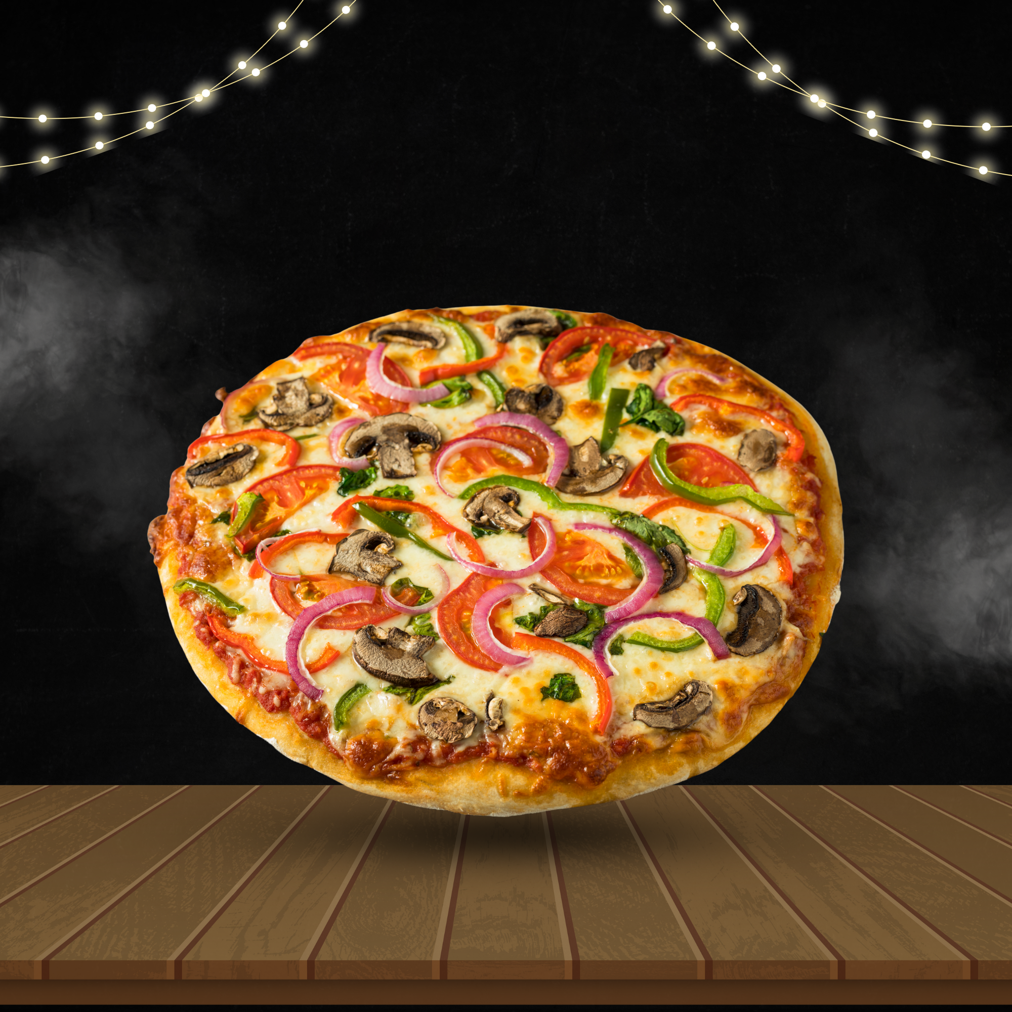 The Veggie Lovers Pizza is a dream come true for anyone who loves the vibrant flavors of fresh, garden-grown vegetables. Packed with an assortment of colorful toppings like mushrooms, bell peppers, spinach, onions, and olives, all resting on a perfectly crisp crust, this pizza is a healthy yet indulgent treat. Whether you’re a vegetarian or just craving a wholesome, veggie-packed meal, this pizza offers the perfect balance of savory flavors and wholesome goodness in every bite. A true celebration of vegetables, perfect for any pizza night!